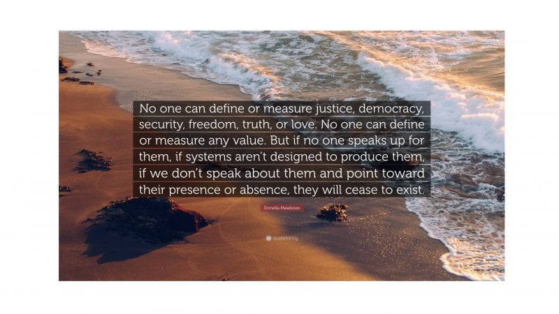 As the quote in the image above by Donella Meadows, a leading systems thinker, suggests, some of the things which are valuable and important for a sustainable and equitable future, are not easy to define or measure in our current systems, but it is important that we keep trying. What kind of systems would you like?